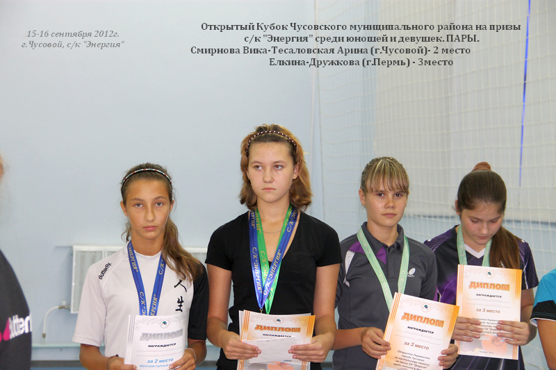 • 15-16 сентября 2012 года. Открытый Кубок г.Чусового среди юношей и девушек с рейтингом 0-199 и 200-499 единиц