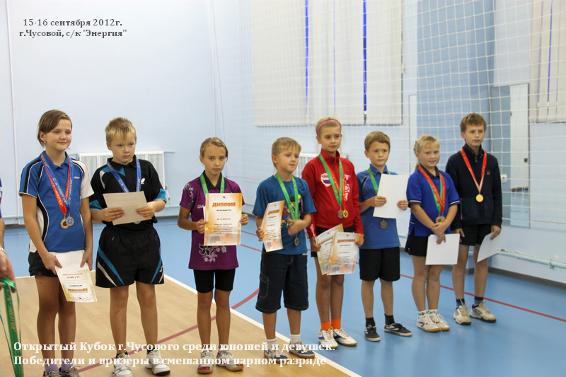 • 15-16 сентября 2012 года. Открытый Кубок г.Чусового среди юношей и девушек с рейтингом 0-199 и 200-499 единиц