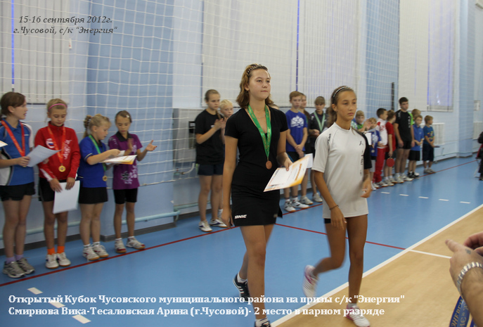 • 15-16 сентября 2012 года. Открытый Кубок г.Чусового среди юношей и девушек с рейтингом 0-199 и 200-499 единиц