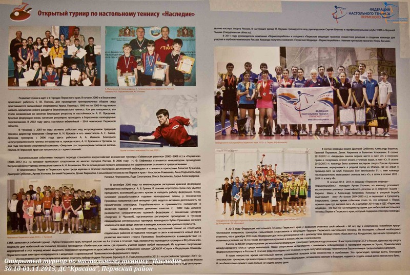 • Открытый турнир "Наследие", посвященный памяти тренеров и спортсменов Пермского края (30.10-01.11.2015, ДС "Красава")